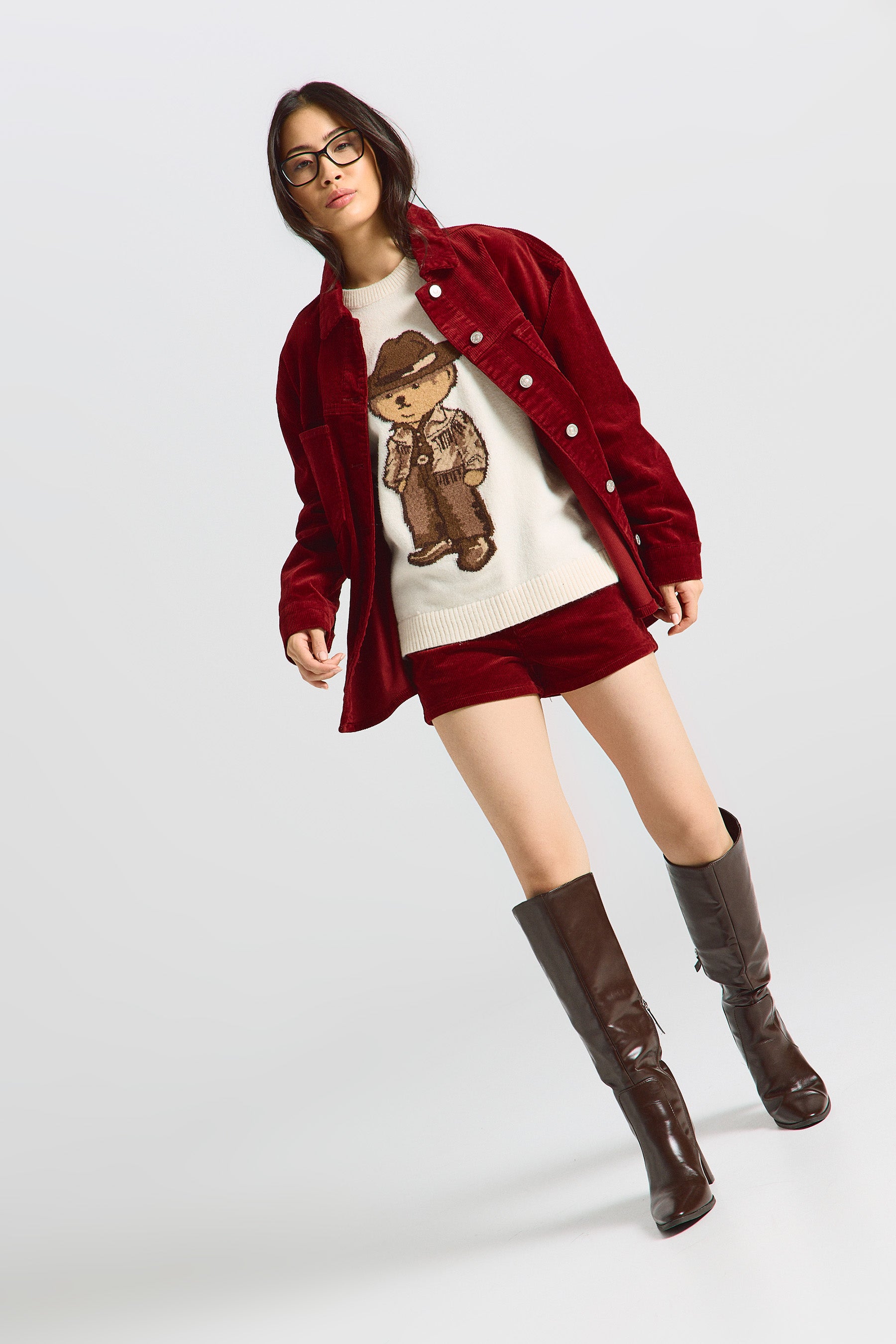 חולצת קורדרוי מכופתרת עם שרוולים ארוכים, צווארון קלאסי ו2 כיסים בחזית.