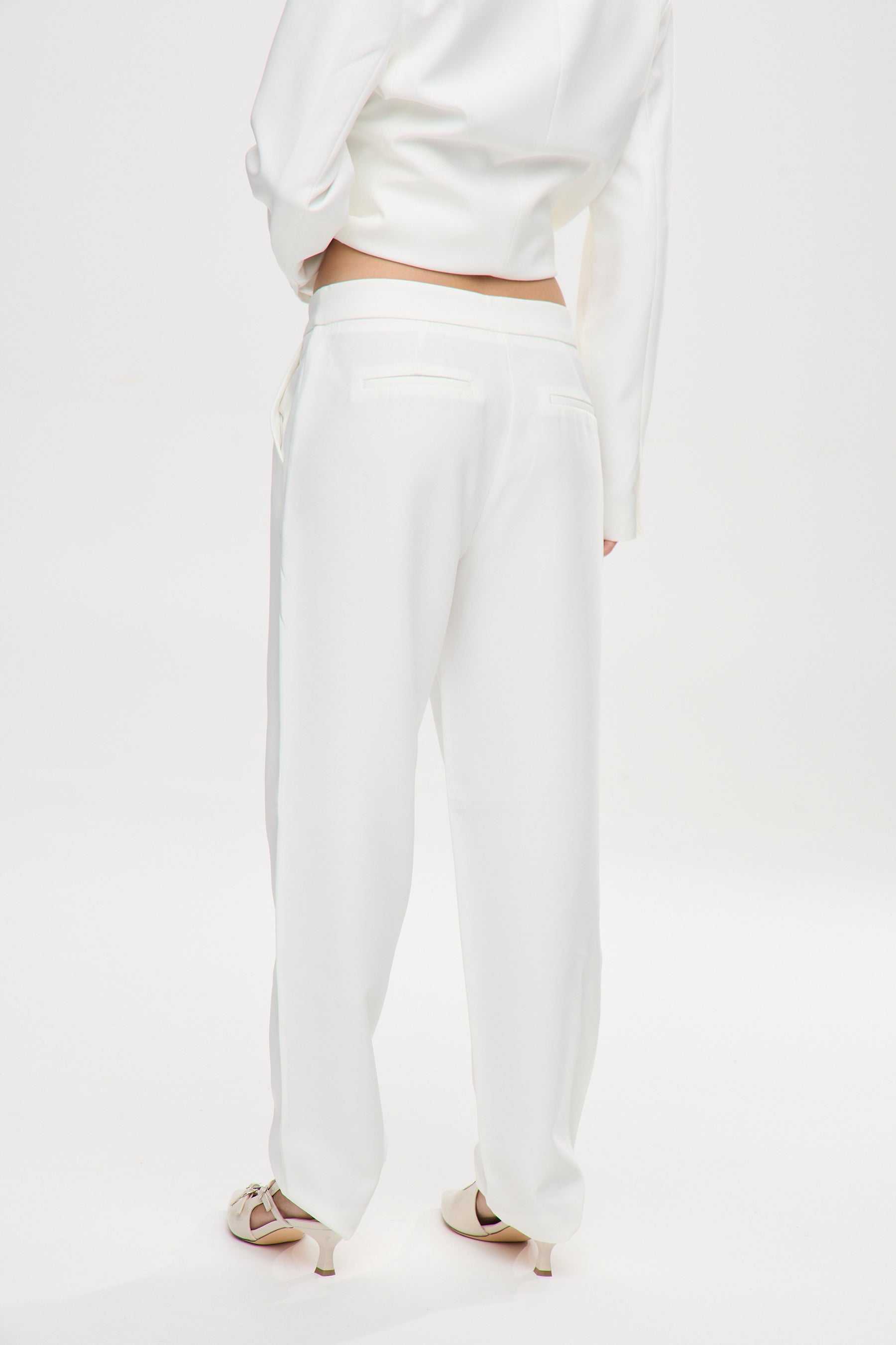 מכנסיים ארוכים בגזרה ישרה עם 4 כיסים וסגירת קרס ורוכסן.