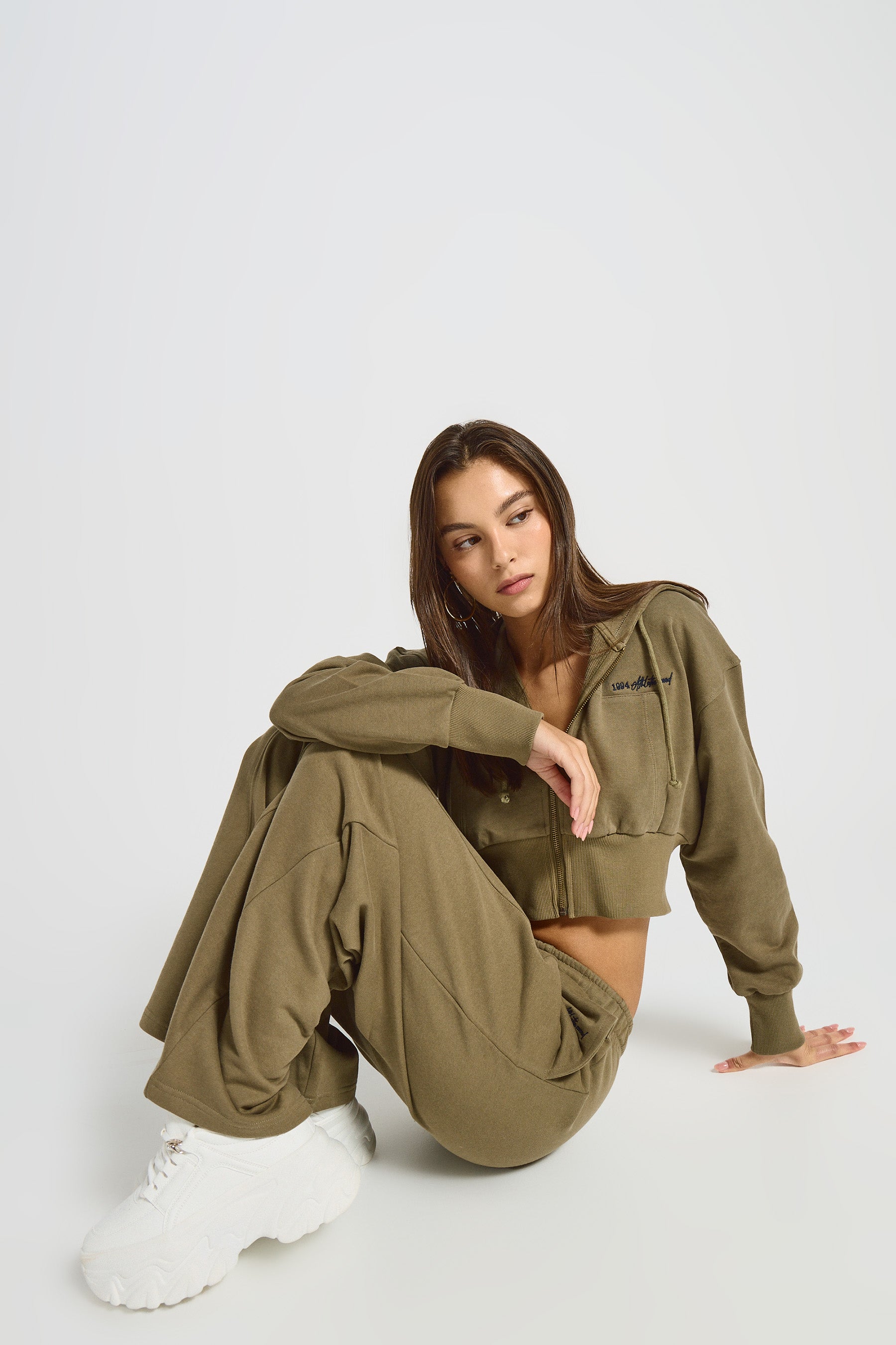פוטר בגזרת קרופ משולב כובע קפוצ'ון עם שרוכים. לקפוצ'ון שרוולים ארוכים, ריקמה, סיומת ריב וסגירת רוכסן בחזית.