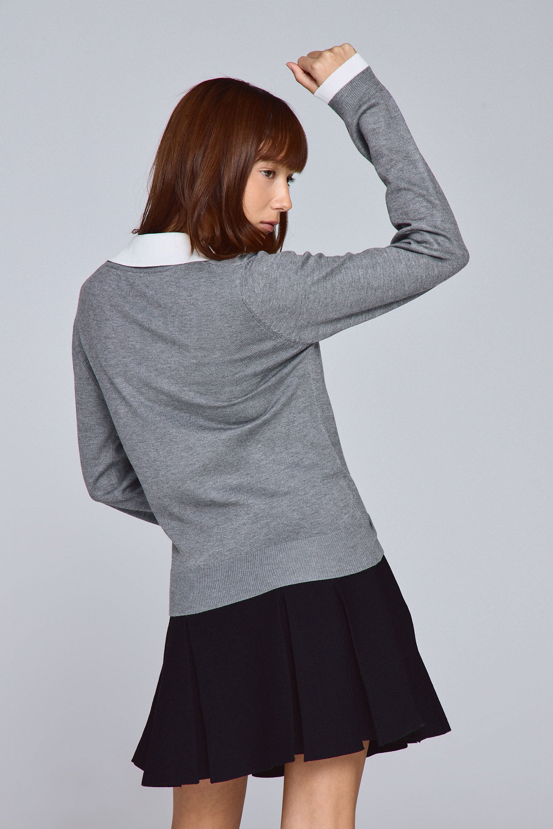 חולצת סריג ארוכה עם צווארון קלאסי ומחשוף וי.