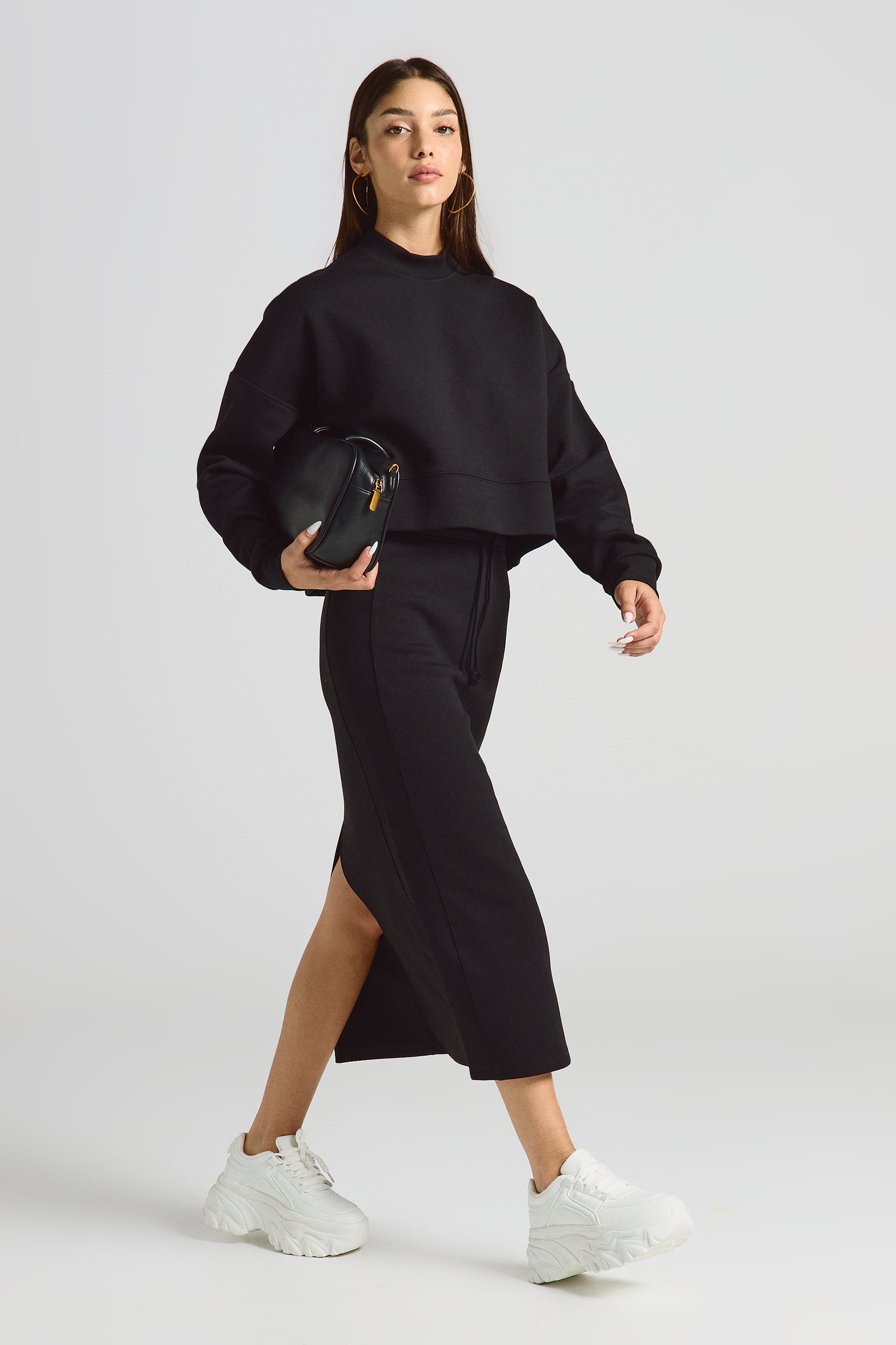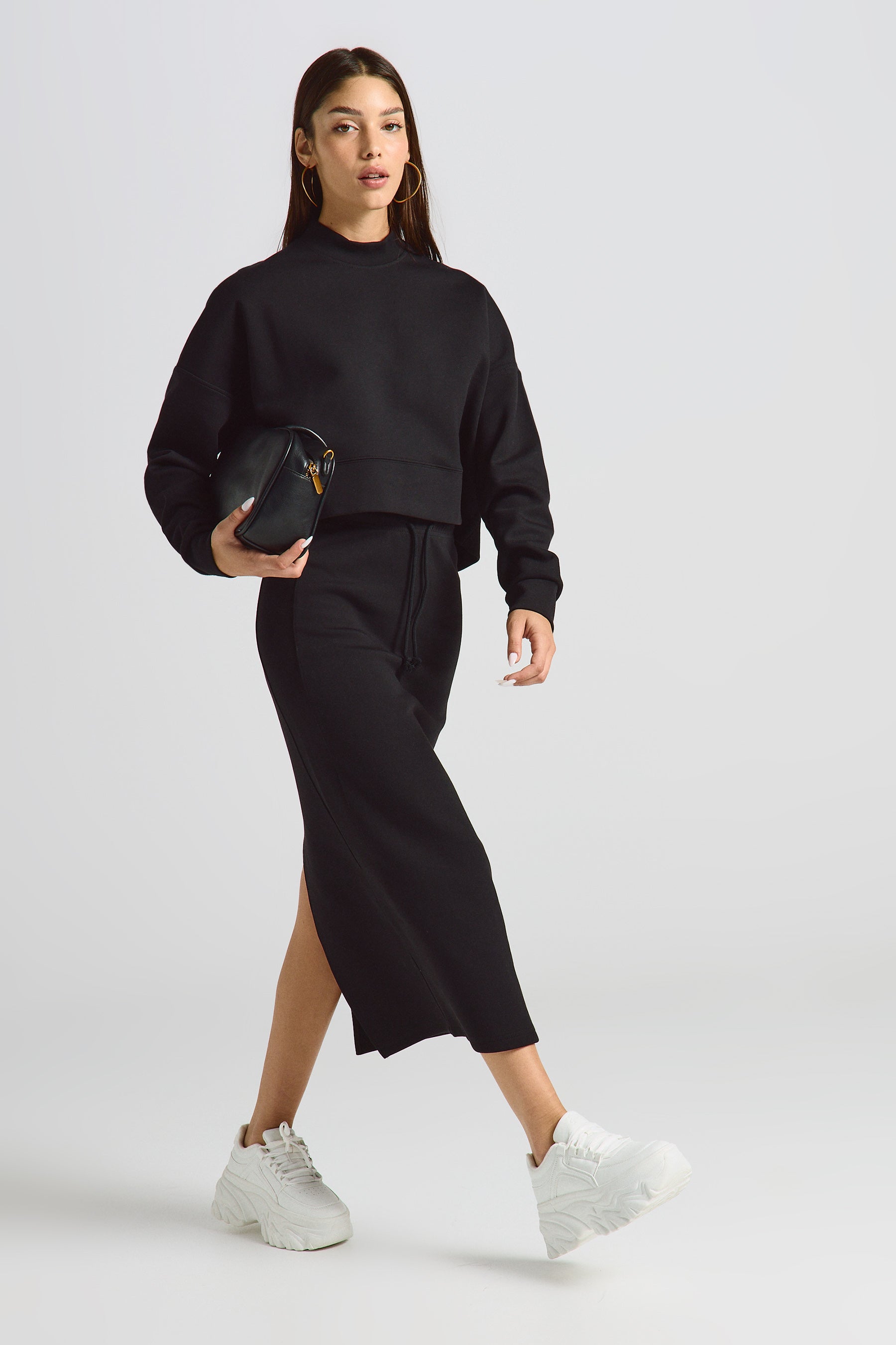סווטשירט בגזרת קרופ עם שרוולים ארוכים ומפתח צוואר סגור.