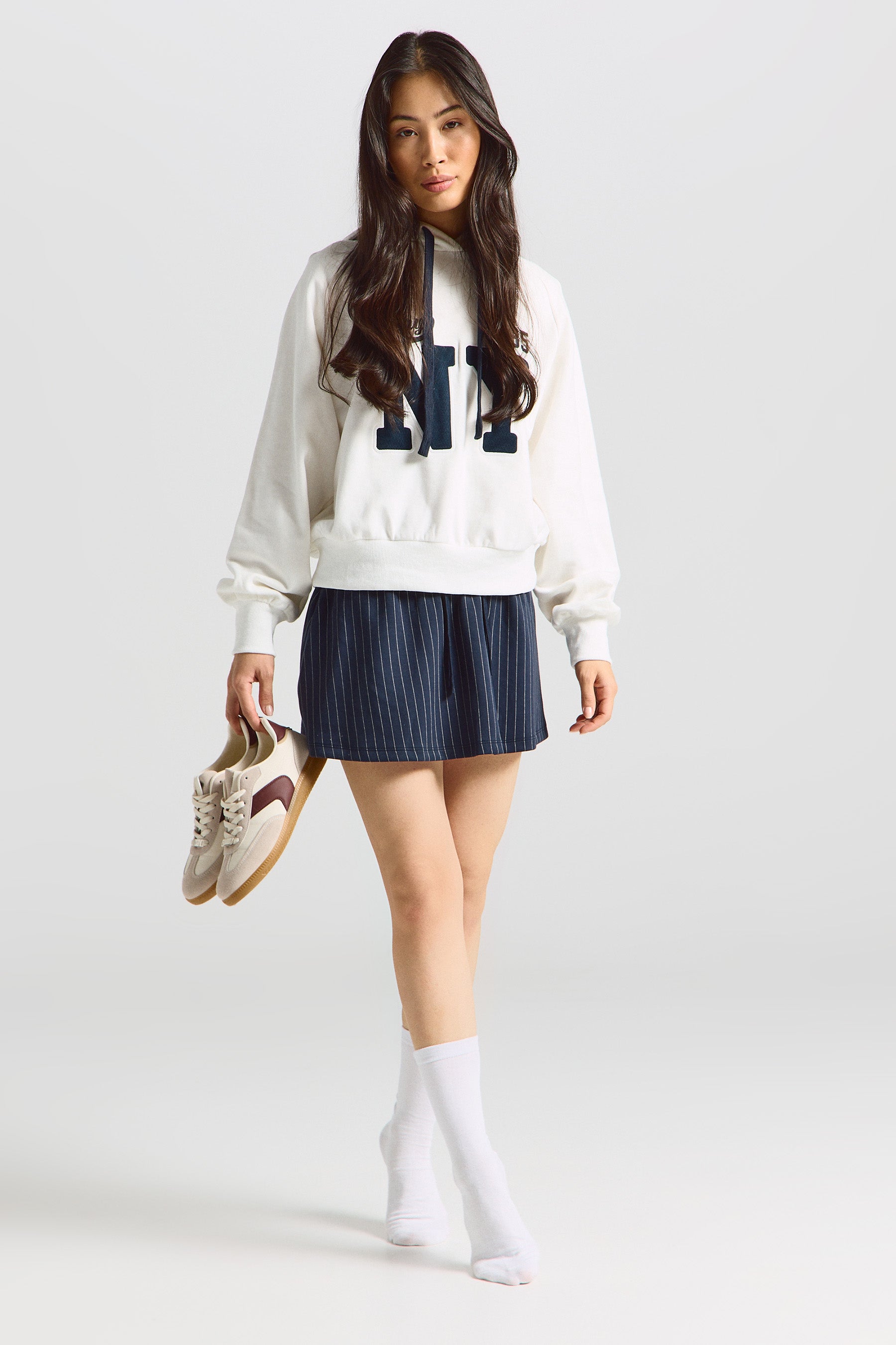 סווטשירט בשילוב כובע קפוצ'ון עם שרוכים. לסווטשירט שרוולים ארוכים, פאץ' וסיומת ריב.